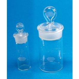 “Cowbell” Weighing bottles are glass laboratory equipment used for precise weighing of solids. Most of the glass used in the bottles is thin and fragile glass, but sometimes they are also made of ceramics or plastics. Dishes tend to have many different shapes.