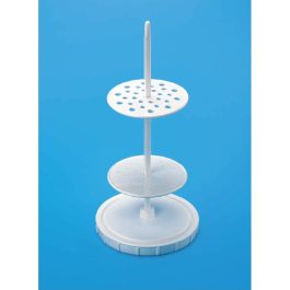 “Cowbell ” This detachable stand can hold 12 pipettes, 6 on each side, in a horizontal position. Moulded in Polypropylene, this autoclavable stand has two sides which are attached to each other with three metallic rods coated with Polypropylene. This stand can be easily disassembled for space saving storage.